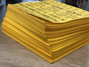 - >350 g/m² – idealna gramatura do produkcji pocztówek, banerów (ze względu na ekspozycje na warunki pogodowe), a także do ciężkich kartonów.