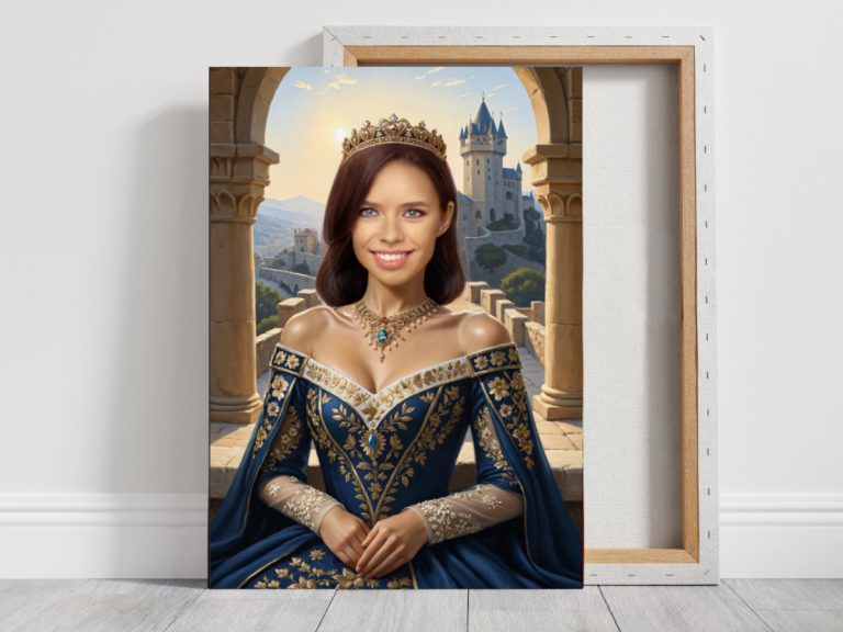 Portret na płótnie ze zdjęcia – Królewna to doskonały sposób na uwiecznienie zdjęcia w wyjątkowej formie portretu na płótnie. Dzięki połączeniu wysokiej jakości wydruku na płótnie z precyzyjnym retuszem oraz starannym wkomponowaniem w wybraną makietę, tworzymy dzieło sztuki, które będzie dumą każdego wnętrza.
