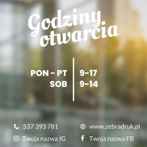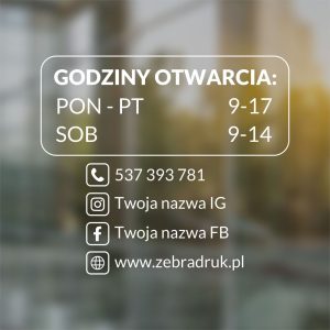 Naklejka godziny otwarcia na szybę