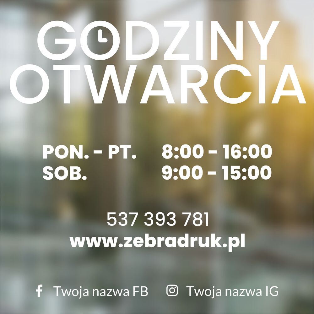Oferujemy kompleksową obsługę, w tym możliwość zaprojektowania unikalnej naklejki z godzinami pracy.
