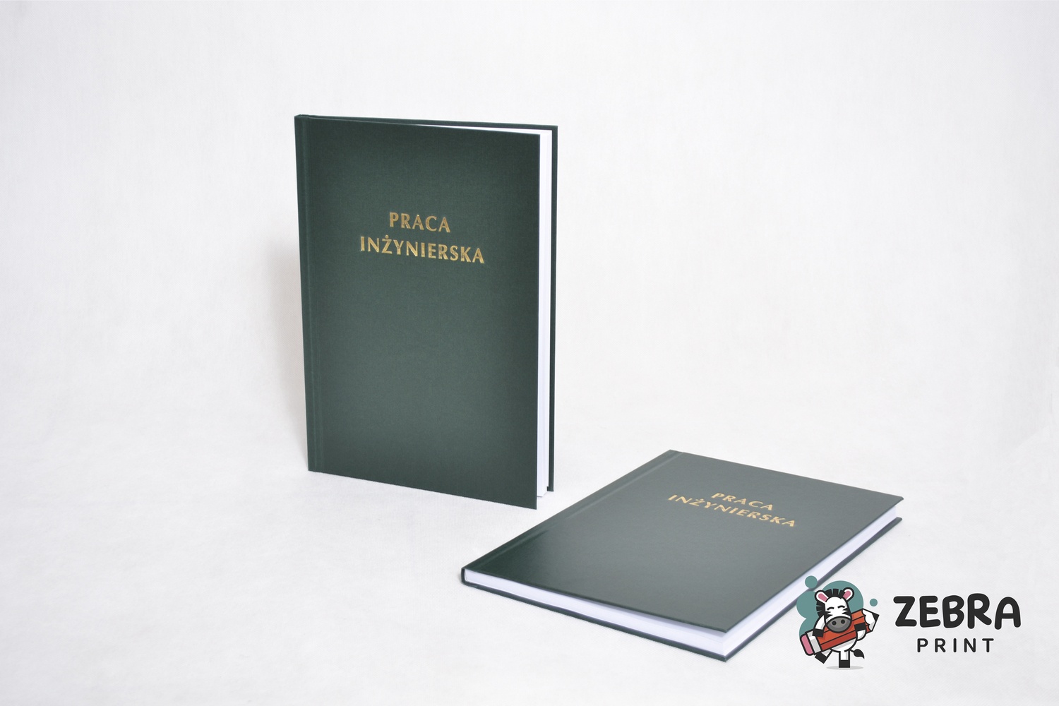 - Oprawa twarda: Jest bardziej trwała i profesjonalna, często wybierana dla prac doktorskich. Jest możliwość wybory kolory oprawy.