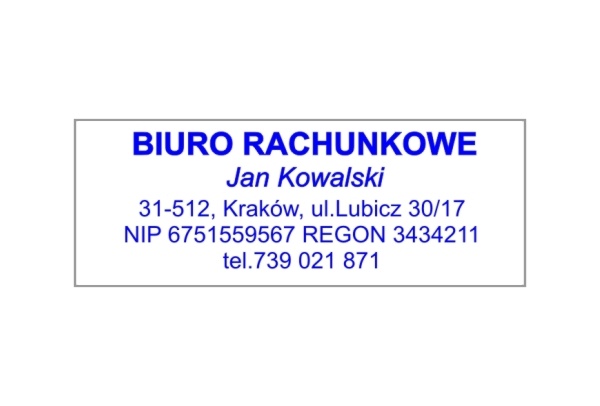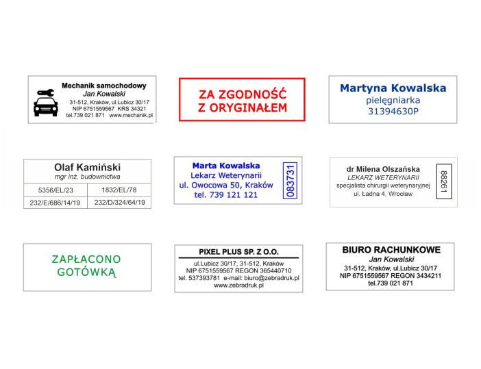 Proste projekty wykonujemy w cenie – prosimy o informację, jaki tekst mamy zamieścić na pieczątce.